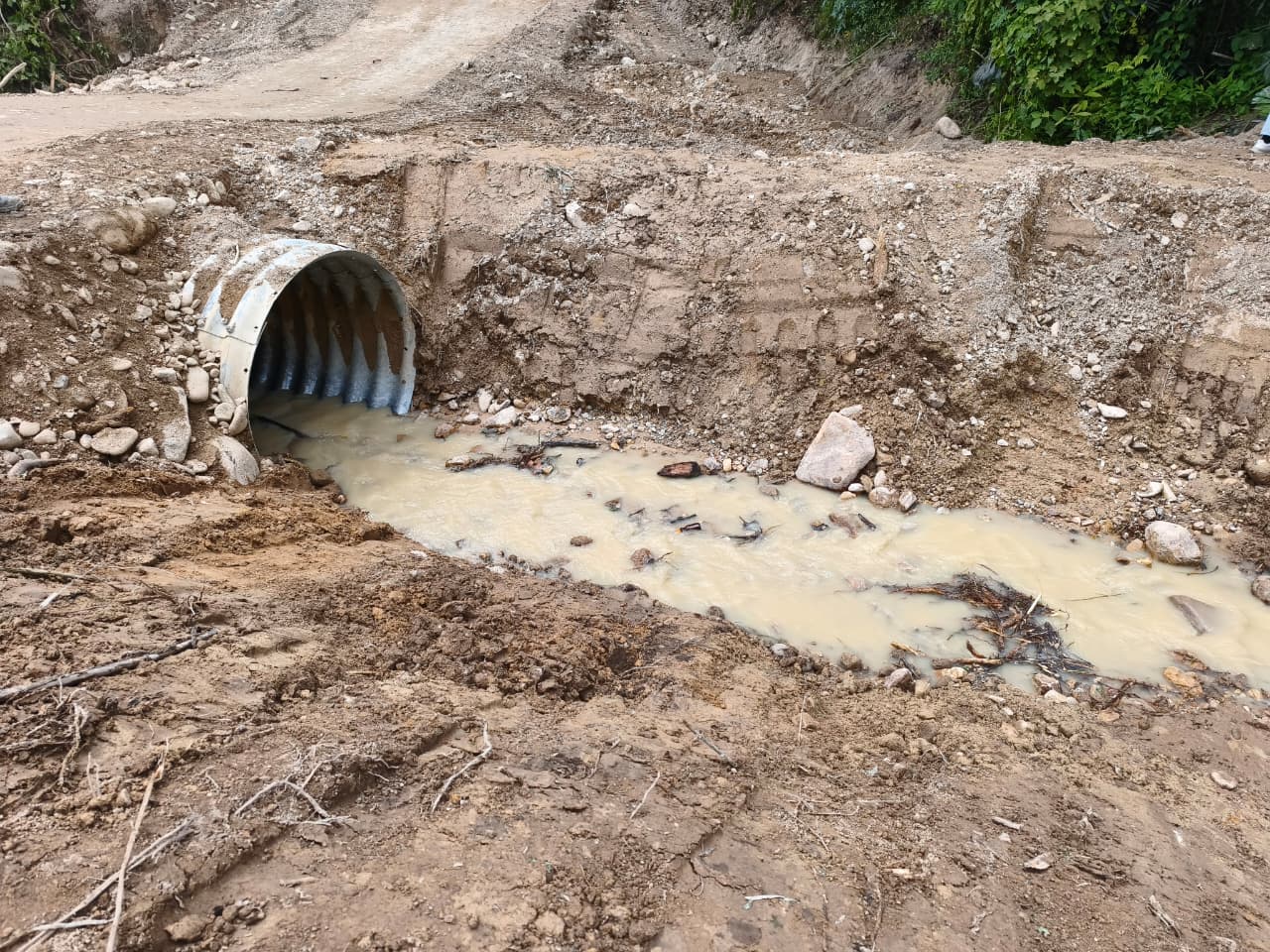 Untuk mengatasi masalah tersebut, Pani Gold Mine mengerahkan satu unit alat berat excavator untuk memperlancar proses penggalian dan pemasangan gorong-gorong sepanjang 7 meter. Pemasangan ini berfungsi sebagai saluran penyeberangan air di bawah jalan, sehingga air tidak lagi menggenangi permukaan jalan.