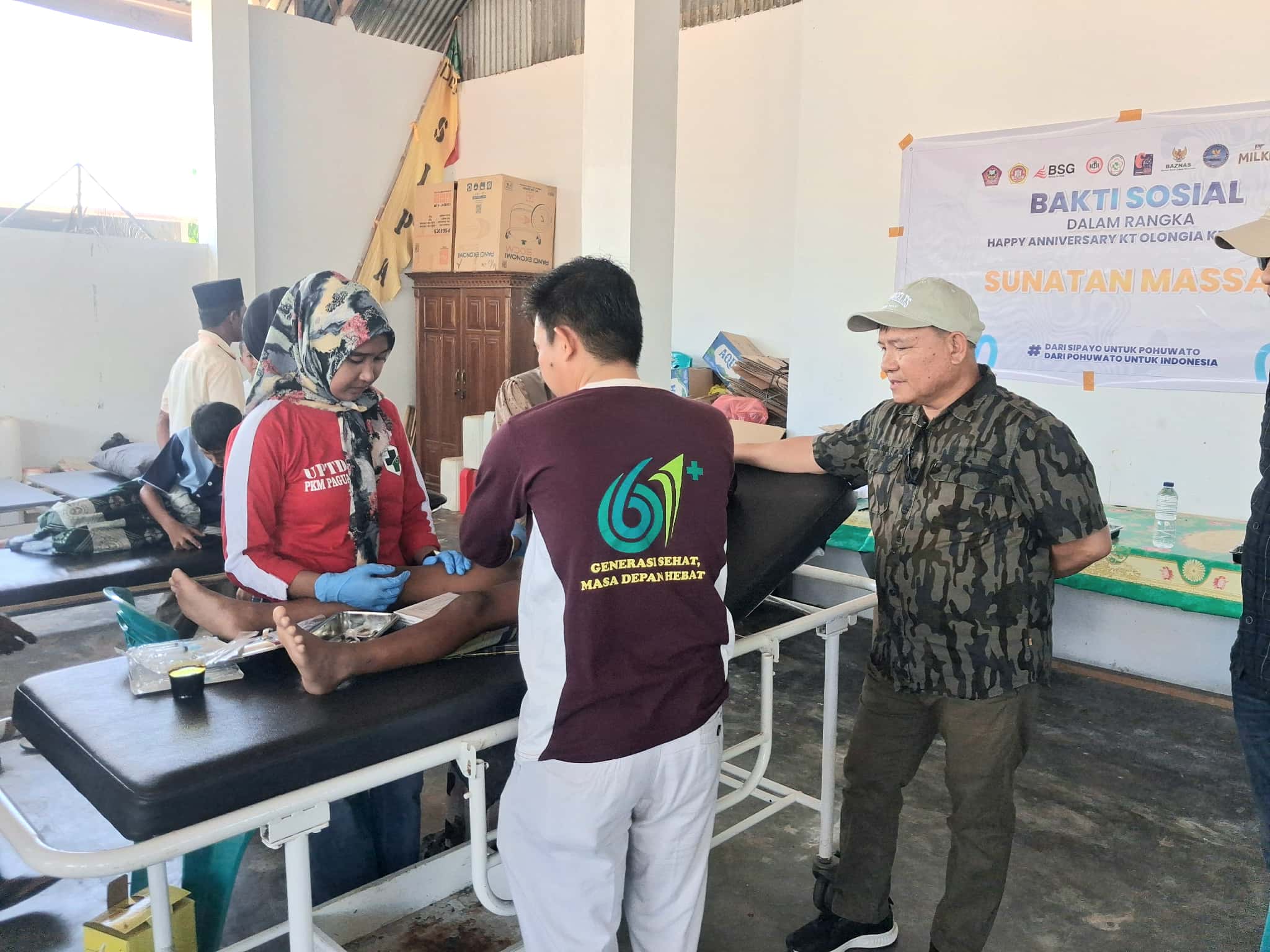 POLITIK, ATENSI- Kegiatan Bakti Sosial dalam rangka HUT ke-4 Karang Taruna Olongia, Desa Sipayo yang berkolaborasi dengan Ikatan Dokter indonesia Pohuwato, mendapat apresiasi yang luar biasa dari Ketua DPRD Pohwato, Beni Nento.