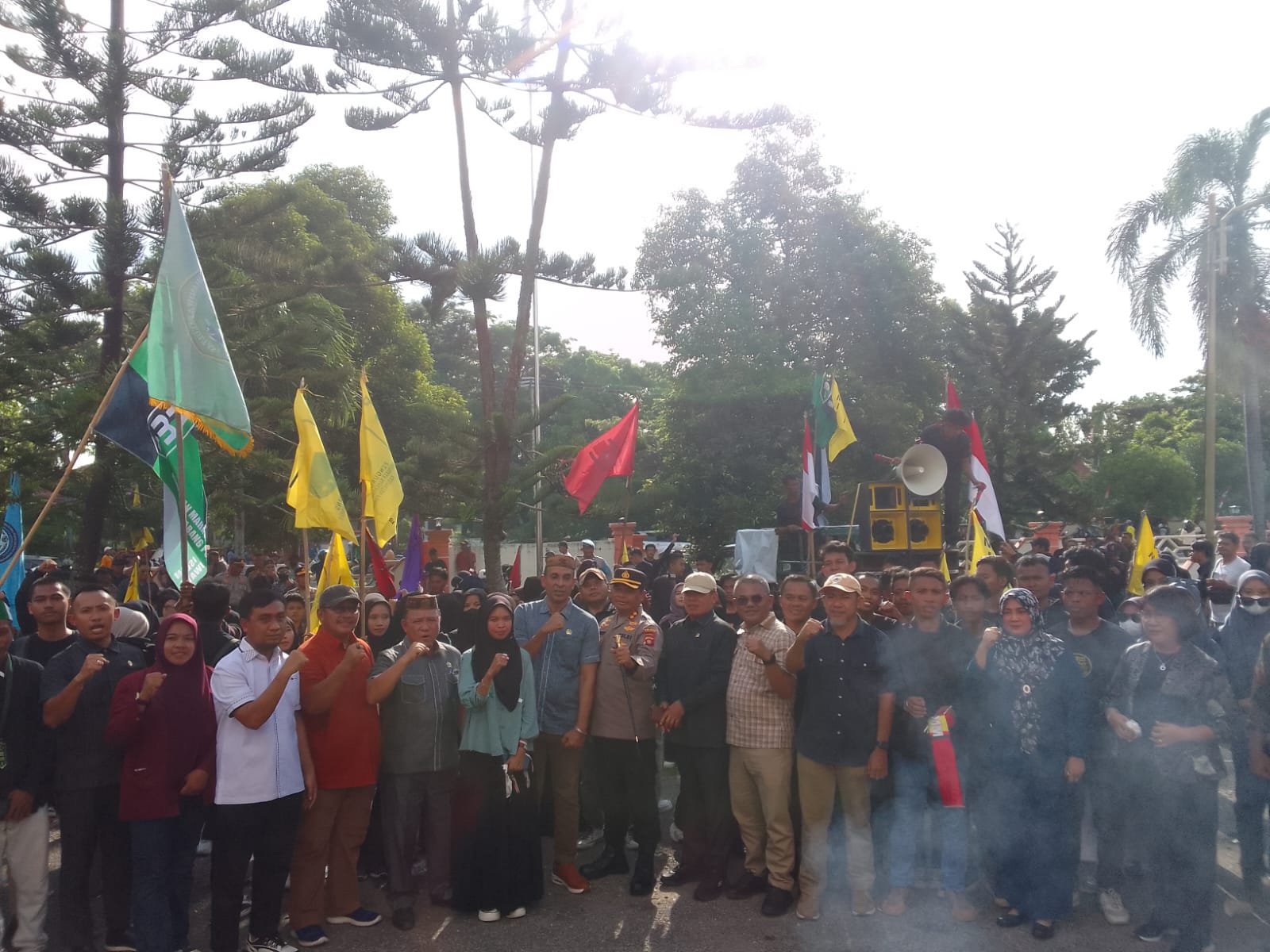 Febrianto Mardain, Jeni Eman Tulung, Luluk A. Yulianti, menyambut aksi unjuk rasa tersebut.