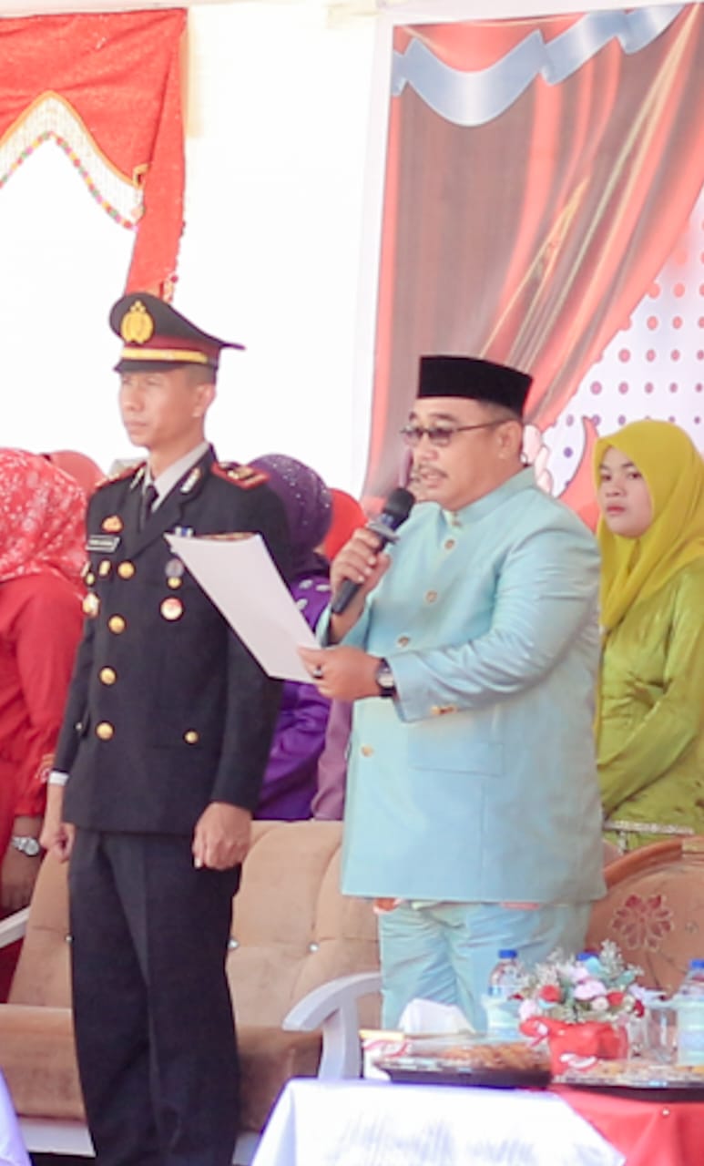 Suprapto Monoarfa, yang dikenal sebagai Anggota Legislatif Kabupaten Pohuwato membacakan teks proklamasi dengan suara yang lantang dan penuh semangat.