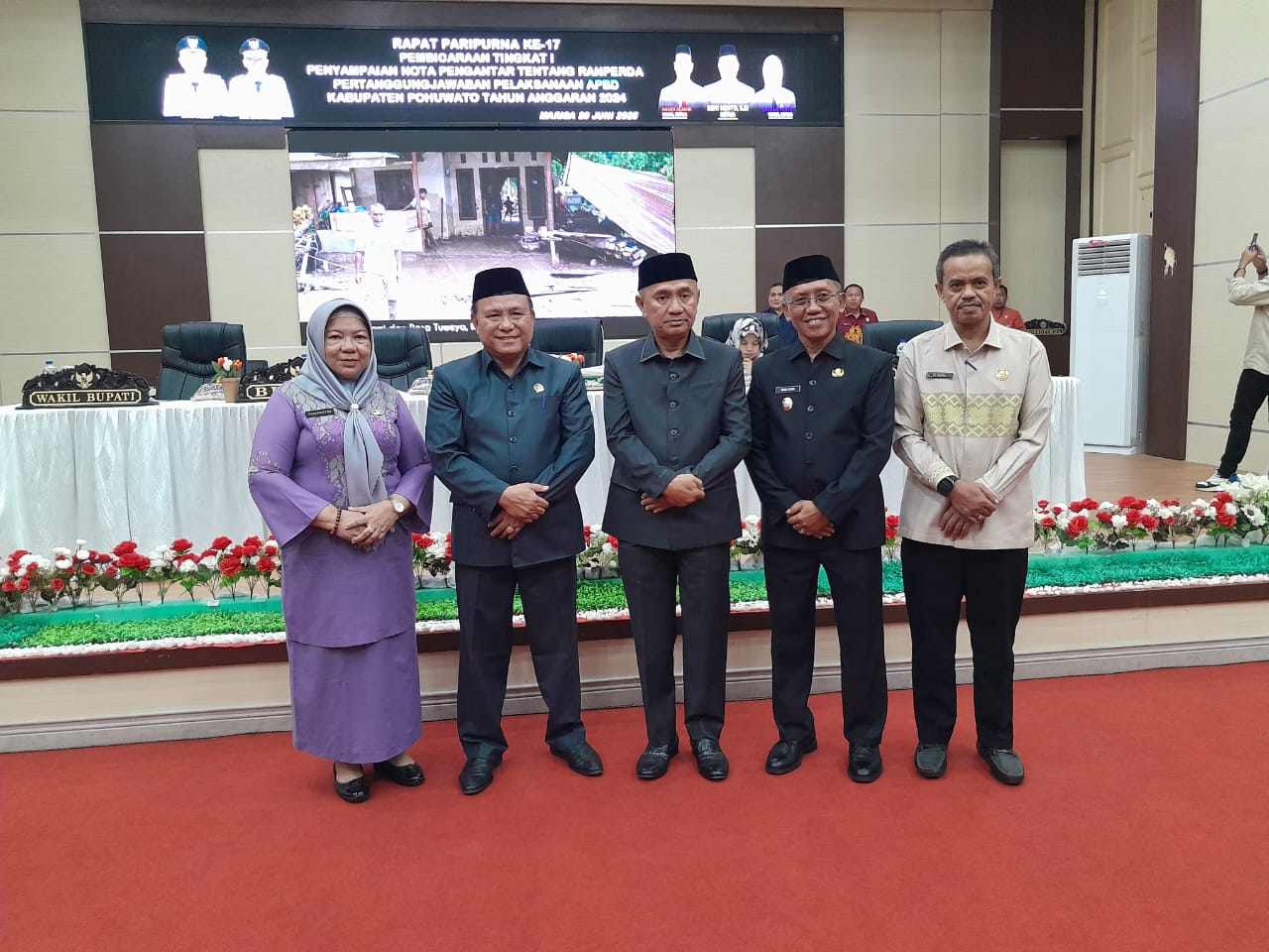 POLITIK, ATENSI.CO– Dewan Perwakilan Rakyat Daerah (DPRD) Kabupaten Pohuwato menggelar Rapat Paripurna  penyampaian Nota Pengantar Pemerintah Daerah atas Rancangan Peraturan Daerah (Ranperda) tentang Pertanggungjawaban Pelaksanaan APBD Tahun Anggaran 2024, serta pandangan umum fraksi-fraksi dan tambahan penjelasan pemerintah daerah.